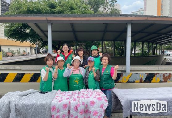 동구동 새마을부녀회원들은 거동이 불편하거나 어려운 경제 사정으로 이부자리를 세탁하지 못하는 어르신들의 쾌적한 생활환경 유지를 위해 이불, 담요 등 15점을 수거하고 정성을 담아 깨끗이 세탁·건조해 배달까지 이어지는 원스탑 서비스로 지역사회 봉사를 실천했다.
