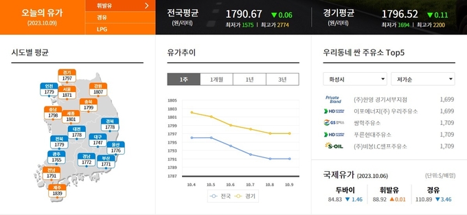 2023년 10월 9일 오늘의 유가