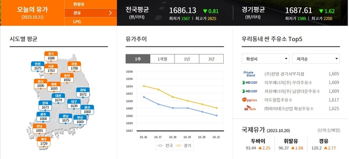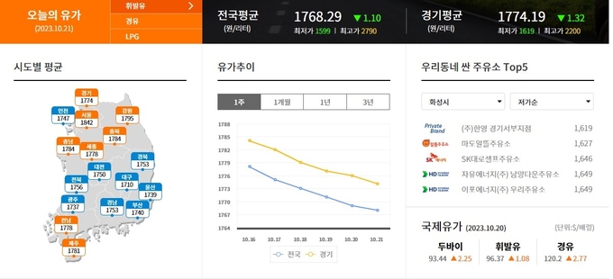 2023년 10월 21일 오늘의 유가