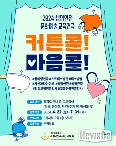 뉴스다 최광묵 기자 | 4.16민주시민교육원(원장 전명선)이 오는 7월 31일까지 경기도 관내 중·고등학생을 대상으로 생명 안전 교육연극 ‘커튼콜, 마음콜’ 프로그램을 운영한다.