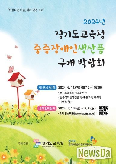 뉴스다 최광묵 기자 | 경기도교육청은 2024년 중증장애인생산품 구매 박람회를 오는 6월 11일 도교육청 남부청사에서 진행한다. 온라인 박람회는 지난 10일 시작해 오는 7월 8일까지 이어진다.