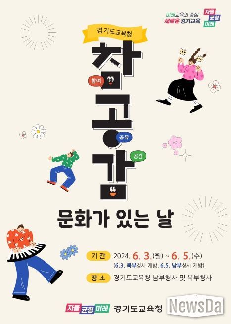 경기도교육청은 6월 3일부터 5일까지 3일간 ‘참여·공유·공감(참공감)! 문화가 있는 날’ 행사를 진행한다.