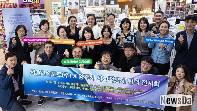 뉴스다 최광묵 기자 | 양주시와 서울고속도로㈜가 지난 14일 오후 3시, 양주휴게소 2층 전시공간에서 ‘서울고속도로(주)×양주시 사회적경제 협력 전시회’ 개막 기념식을 개최했다.