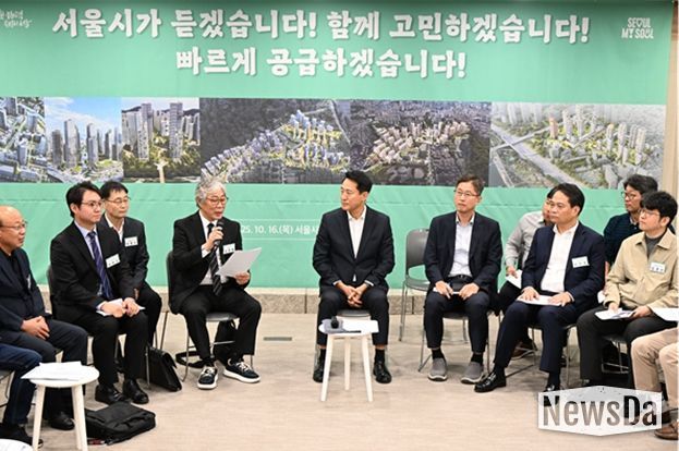 뉴스다 최광묵 기자 | 오세훈 서울시장이 16일 오전 10시 서울시청 간담회장(8층)에서 ‘서울시 정비사업연합회’ 소속 주민대표들과 ‘주택공급 활성화를 위한 민‧관정책협의회’를 개최했다.