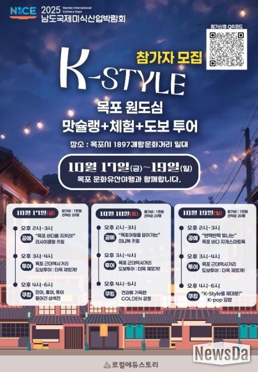 뉴스다 최광묵 기자 | 남도국제미식산업박람회 사무국은 17일부터 19일까지 목포 원도심 일원에서 ‘원도심 K-Style 박람회’를 개최한다.