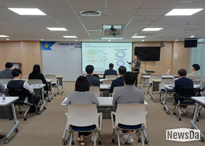 뉴스다 최광묵 기자 | 경기도의회는 21일 경기도의회 지하 1층 중회의실1에서 의회사무처 직원을 대상으로 'AI 확산에 따른 전력난과 경기도의 대응과제'를 주제로 직무역량강화 교육을 진행했다.