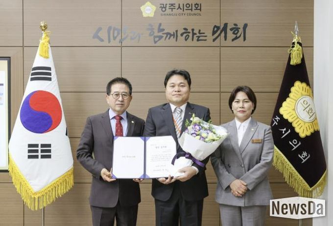뉴스다 최광묵 기자 | 광주시의회는 지난 20일, 광주시의회 10월 칭찬공무원으로 광주시청 스마트교통과 심재진 팀장을 선정하여 의장실에서 증서를 수여했다.