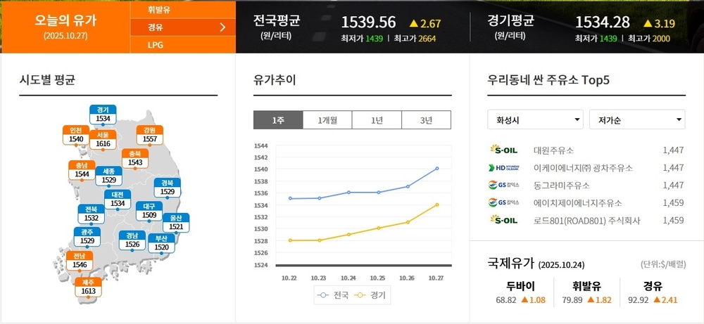 ▲화성시 경 유 제일 싼 주유소 1447원 대원주유소