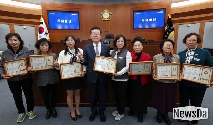 뉴스다 최광묵 기자 | 오산시의회는 27일 본회의장에서 ‘오산시의회 의장 표창 시상식’을 열고 지역사회 발전과 주민 소통에 앞장서 온 통장들을 표창했다.