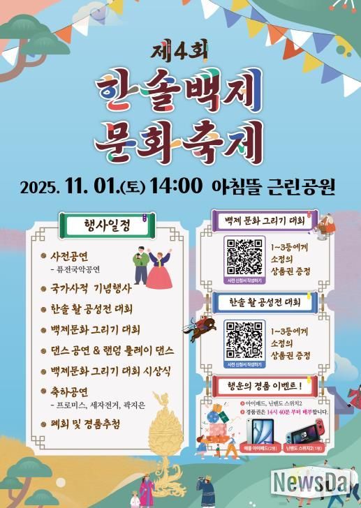 이어 오후 2시부터 7시 40분까지 아침뜰근린공원에서는 ‘제4회 한솔백제문화축제’가 개최된다.