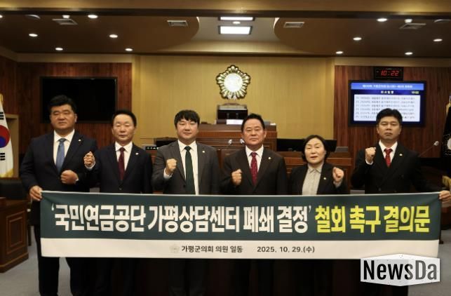 아울러, 국민연금공단의 가평상담센터 폐쇄 결정에 대한 즉각적인 재검토 및 철회를 촉구하기 위해 ▲'국민연금공단 가평상담센터 폐쇄 결정 철회 촉구 결의문'(김종성 의원 대표 발의)을 채택했다.