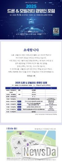 뉴스다 최광묵 기자 | 고양산업진흥원 K-하이테크플랫폼지원단이 오는 11월 5일 국회도서관 소강당에서 ‘2025 드론 & 모빌리티 경영인 포럼’을 개최한다고 밝혔다.
