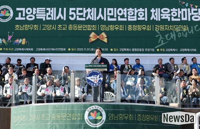 뉴스다 최광묵 기자 | 이동환 고양특례시장이 1일 고양종합운동장에서 열린 ‘고양특례시 5단체시민연합회 체육한마당’ 개회식에 참석해 축사했다.