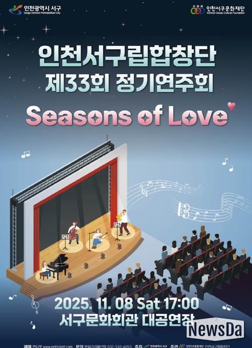 뉴스다 최광묵 기자 | 인천서구립합창단이 오는 11월 8일 오후 5시, 인천서구문화회관 대공연장에서 제33회 정기연주회 ‘Seasons of Love’를 개최한다.
