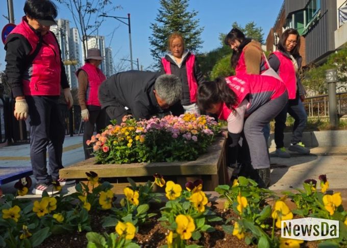 뉴스다 최광묵 기자 | 화성특례시 동탄3동이 지난 5일 주민센터 청사 주변 및 관내 도로변에 비올라 500본을 식재하며 쾌적하고 아름다운 도시환경 조성에 나섰다.