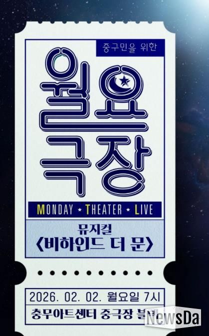 뉴스다 최광묵 기자 | (재)중구문화재단은 서울 중구민을 위한 특별 공연 프로그램인 ‘월요극장’의 2026년 첫 작품으로 뮤지컬 〈비하인드 더 문〉 특별 공연을 선보인다. 2월 2일 오후 7시 충무아트센터 중극장 블랙에서 진행되며, 오는 1월 19일 14시부터 충무아트센터 홈페이지에서 예매가 가능하다.