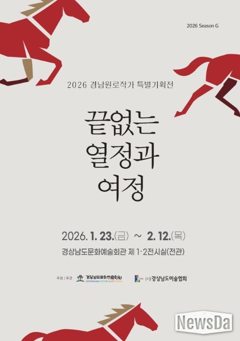 뉴스다 최광묵 기자 | 경남문화예술회관은 1월 23일부터 2월 12일까지 제1·2전시실 전관에서 2026 경남원로작가 특별기획전 ‘끝없는 열정과 여정’을 개최한다고 밝혔다.