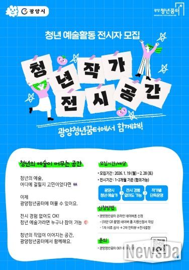 뉴스다 최광묵 기자 | 광양시가 청년 예술가의 창작 활동을 지원하고 시민의 문화 향유 기회를 확대하기 위해 ‘광양청년꿈터’ 내에 청년 작가 전시 공간을 본격적으로 운영한다고 밝혔다.