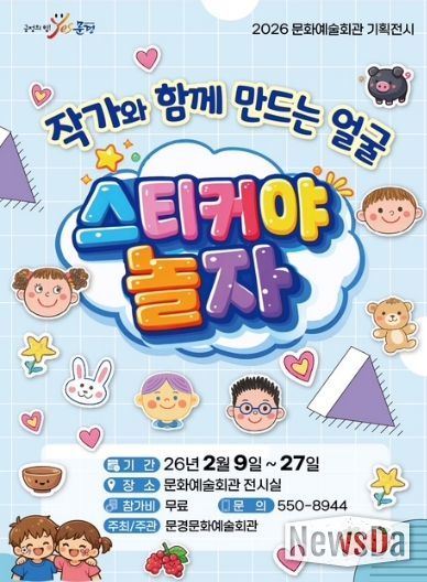 ‘스티커야 놀자’展은 2월 9일부터 2월 27일까지 문화예술회관 전시실에서 열리며, 관람은 무료다. 전시는 매일 오전 9시부터 오후 6시까지(설연휴 및 일요일 제외) 운영될 예정이다.