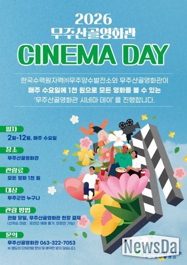 무주군에 따르면 ‘시네마 데이’는 지난 2025년 3월부터 매월 셋째 주 수요일에 운영돼 총 41회, 587명이 관람했다. 올해는 매주 운영으로 횟수가 7회 이상 확대돼 군민들이 일상에서 문화를 즐기는 좋은 기회가 될 것으로 기대가 된다.