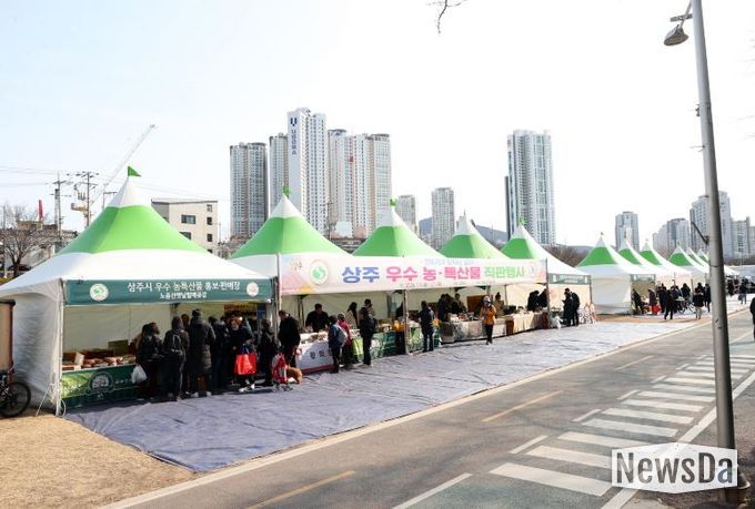 뉴스다 최광묵 기자 | 상주시와 재부상주향우회가 함께 추진한 2026년 설맞이 상주 농특산품 직거래장터가 2월 6일부터 7일까지 이틀간 자매결연 도시 부산 연제구 온천천 시민공원에서 열렸다.