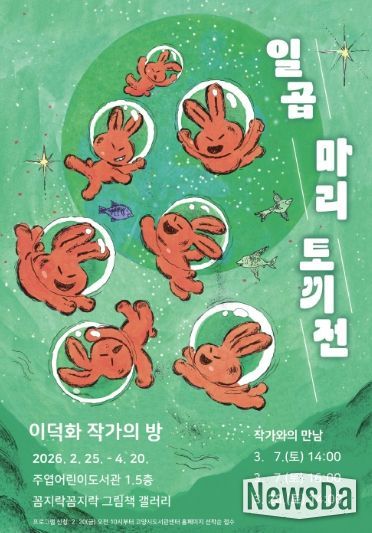 뉴스다 최광묵 기자 | 고양특례시 주엽어린이도서관은 세계그림책 특성화 프로그램의 일환으로 오는 2월 25일부터 4월 20일까지 이덕화 작가의 방‘일곱 마리 토끼전’전시회를 개최한다.
