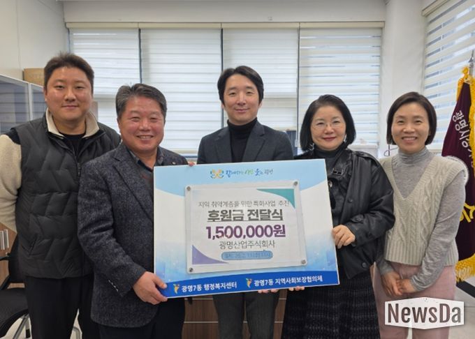 뉴스다 최광묵 기자 | 광명산업은 11일 지역사회 나눔 실천의 일환으로 광명7동 지역사회보장협의체에 취약계층 복지 증진을 위한 후원금 150만 원을 기부했다.