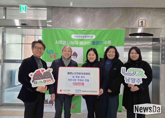뉴스다 최광묵 기자 | 남양주시는 지난 9일 수동면 에덴노인전문요양센터가 설 명절을 맞아 어려운 이웃을 위한 후원금 100만 원을 수동면 지역사회보장협의체에 지정기탁했다고 11일 밝혔다.