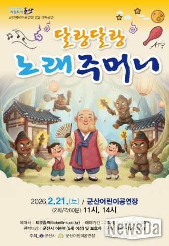 뉴스다 최광묵 기자 | 군산어린이공연장이 21일 어린이를 위한 국악극 ‘달랑달랑 노래 주머니’를 선보인다.