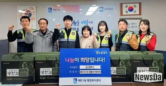 뉴스다 최광묵 기자 | 영통구 매탄1동 행정복지센터는 지난 11일 설 명절을 맞이해 매탄지구대 생활안전협의회가 김 선물세트 20개를 후원했다고 밝혔다. 이번 후원 물품은 관내 저소득 취약계층과 돌봄이 필요한 가정에 전달할 예정이다.