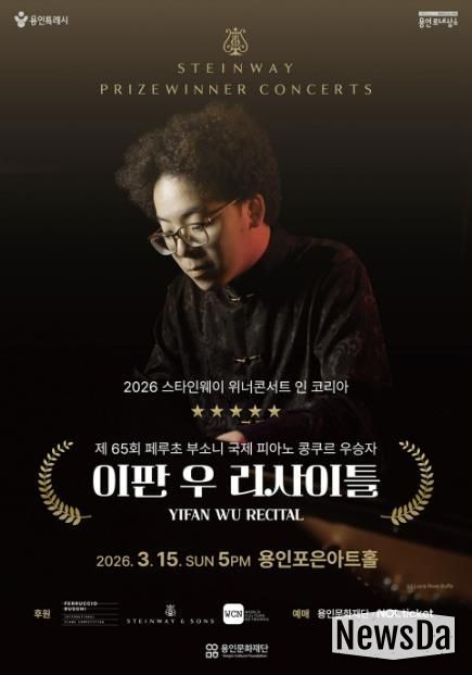 뉴스다 최광묵 기자 | 용인문화재단은 오는 3월 15일 오후 5시, 용인포은아트홀에서 ‘2026 스타인웨이 위너콘서트 – 이판 우 리사이틀’을 개최한다고 밝혔다.