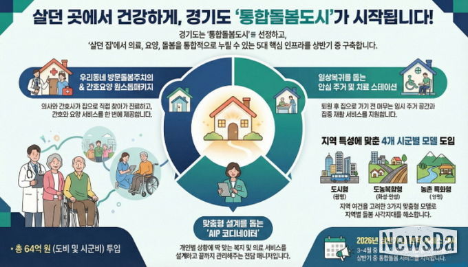 이번 사업은 오는 3월 ‘의료·요양 등 지역 돌봄의 통합지원에 관한 법률’ 시행에 앞서 각 지역의 인구 구조와 특성에 맞춘 ‘경기형 통합돌봄 모델’을 구축하려는 선제적 조치다. 경기도는 도비와 시군비 총 64억 원의 예산을 투입할 예정이다. 국정 제1 동반자로서 경기도가 통합돌봄 정책 기조를 가장 앞장서서 실천함으로써 경기도의 실행 리더십을 증명하는 의지를 담고 있다.