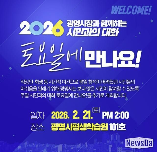 광명시는 오는 21일 오후 2시 평생학습원(철망산로 2)에서 ‘2026년 시민과의 대화-토요일에 만나요!’를 개최한다고 19일 밝혔다.