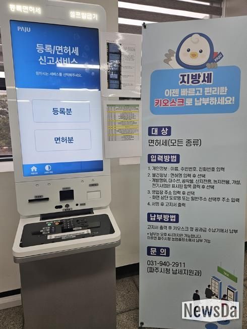 뉴스다 최광묵 기자 | 파주시는 납세자가 여러 기관을 오가야 했던 기존 세금 신고 절차의 불편을 해소하고자 파주시청 민원동과 파주등기소에 무인민원발급기 운영을 개시한다.