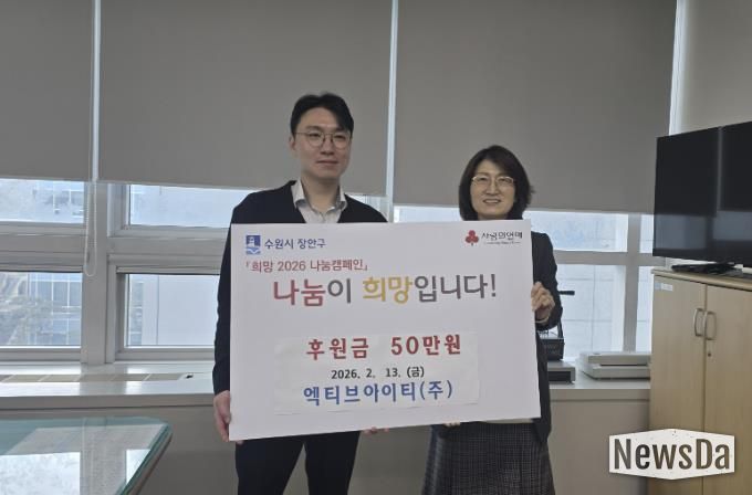 뉴스다 최광묵 기자 | 수원시 장안구에 위치한 엑티브아이티(주)가 지난 13일, 설 명절을 맞아 후원금 50만원을 장안구청에 기부했다.