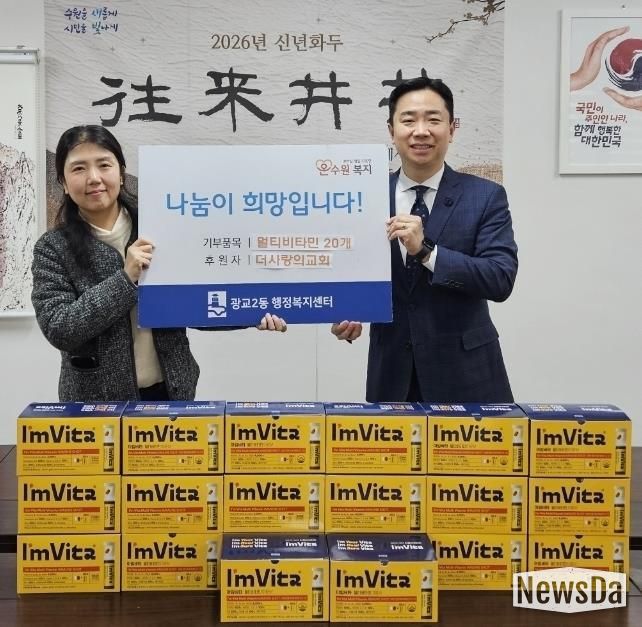 뉴스다 최광묵 기자 | 영통구 광교2동은 지난 13일 더사랑의교회가 지역사회 내 어려운 이웃을 돕기 위해 광교2동 행정복지센터에 멀티비타민 20통을 전달했다고 밝혔다. 이번 기부는 소외되기 쉬운 이웃들에게 따뜻한 마음을 전하고자 마련됐다.