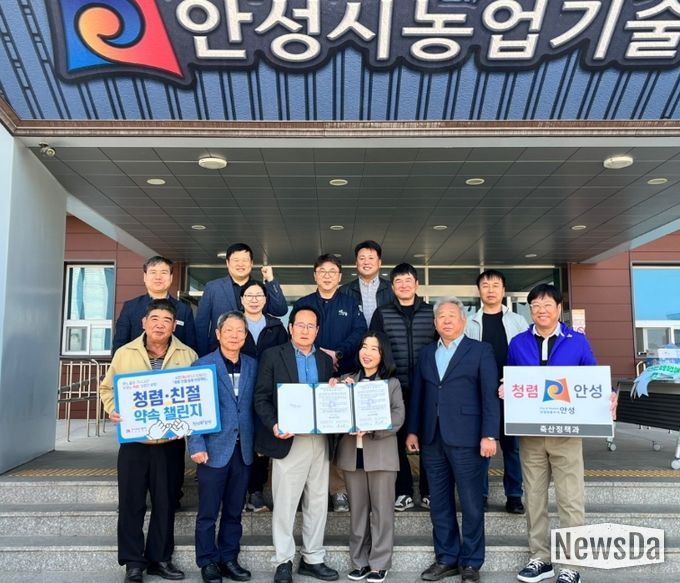 뉴스다 최광묵 기자 | 안성시 농업기술센터 축산정책과가 지역 축산단체들과 손잡고 투명하고 공정한 행정 실현을 위한 '청렴 행보'에 본격적으로 나섰다. 시는 지난 4월 2일, 안성시 축산단체협의회와 함께 청렴 협약식을 개최하고 신뢰받는 축산행정 구현을 위한 협력 기반을 강화했다고 밝혔다.