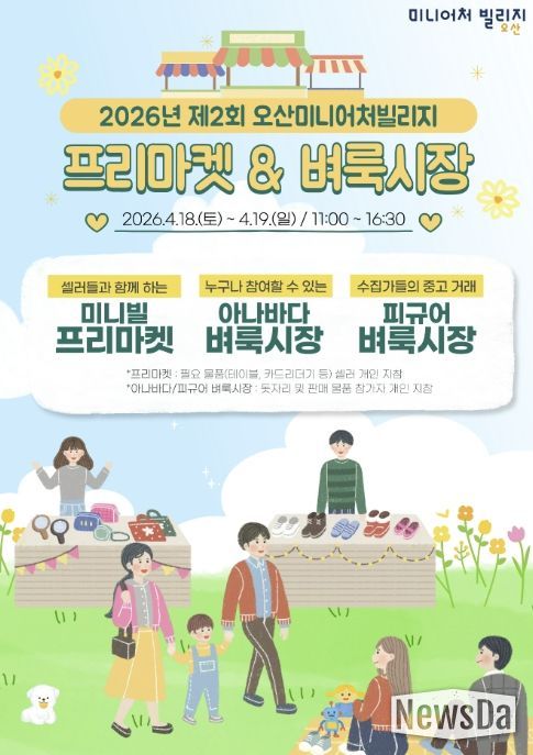 뉴스다 최광묵 기자 | 오산시 대표 복합문화공간인 오산미니어처빌리지는 오는 4월 18일부터 19일까지 이틀간 ‘제2회 프리마켓 및 벼룩시장’을 개최한다고 밝혔다.