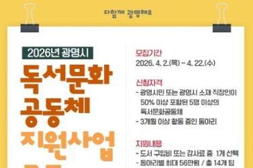 광명시, ‘2026년 독서문화공동체 지원사업’ 참여 동아리 모집