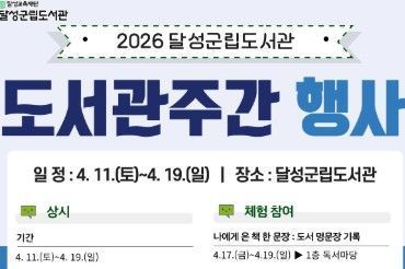 달성군립도서관 11일부터 ‘도서관 주간’행사