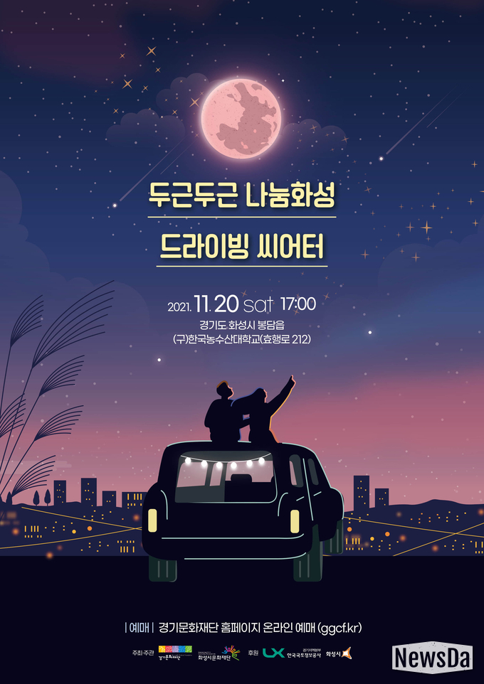 두근두근 나눔화성, 드라이빙 씨어터(이하 드라이빙 씨어터)는 위드 코로나 시대를 맞아 그동안 강도 높은 사회적 거리 두기로 문화 예술을 향유할 기회가 적었던 도민들을 위해 화성시문화재단과 경기문화재단이 공동으로 주최하고, 화성시와 한국국토정보공사(경기지역본부)가 후원하는 비대면 드라이브-인 공연이다.