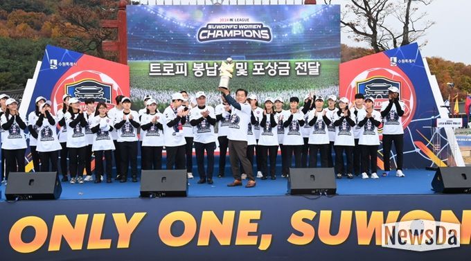 이날 행사는 수원시립합창단 공연, 이재준 시장 인사말, 선수단 소개, 우승트로피 봉납식, 포상금 전달, 우승 세레머니, 팬사인회 등으로 진행됐다.