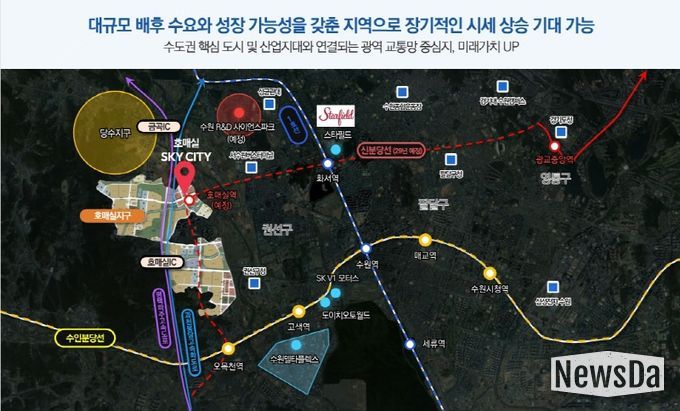 더불어 ‘호매실 스카이시티’ 인근에는 풍부한 수요도 자리해 있다. 인근 삼성 비즈니스 벨트에 근로자 등 수요가 탄탄하게 갖춰진 만큼 공실 발생에 대한 우려가 적다.