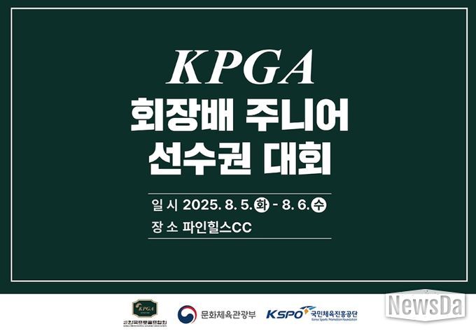 뉴스다 류대현 기자 | (사)한국프로골프협회(회장 김원섭, 이하 KPGA)가 주최 및 주관하고 문화체육관광부와 서울올림픽기념국민체육진흥공단이 후원하는 ‘KPGA 회장배 주니어 선수권대회’가 5일부터 6일까지 양일간 전남 순천 소재 파인힐스 골프&호텔(파72. 6,811야드)에서 개막한다.