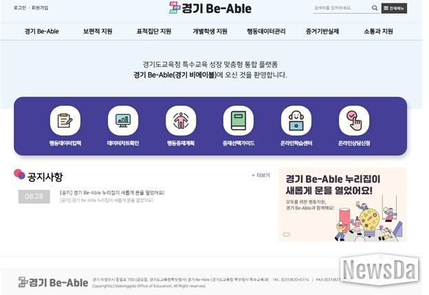 뉴스다 최광묵 기자 | 경기도교육청은 이달 1일부터 특수교육 대상학생의 행동 문제 예방 및 지원을 위해 ‘경기 비에이블(Be-Able)’ 통합형 온라인 플랫폼을 정식 개통한다.