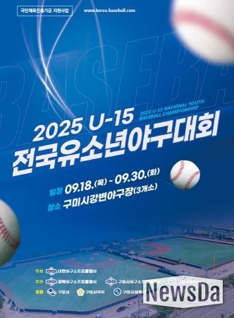 뉴스다 류대현 기자 | 구미시가 9월 18일부터 30일까지 강변야구장 3개 구장에서 'U-15 전국 유소년 야구대회'를 개최한다.