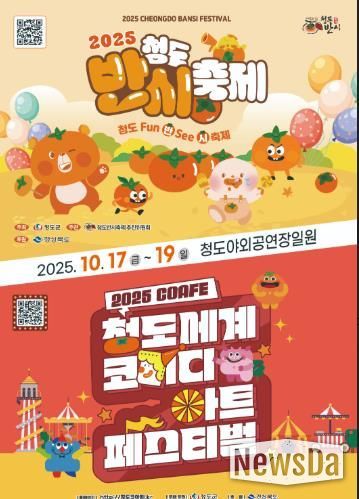 뉴스다 최광묵 기자 | 청도군 은 모두가 함께 웃고 즐기는 축제, 2025 청도반시축제 및 청도세계코미디아트페스티벌이 오는 10월 17일부터 19일까지 3일간 청도야외공연장 일원에서 개최한다고 밝혔다.