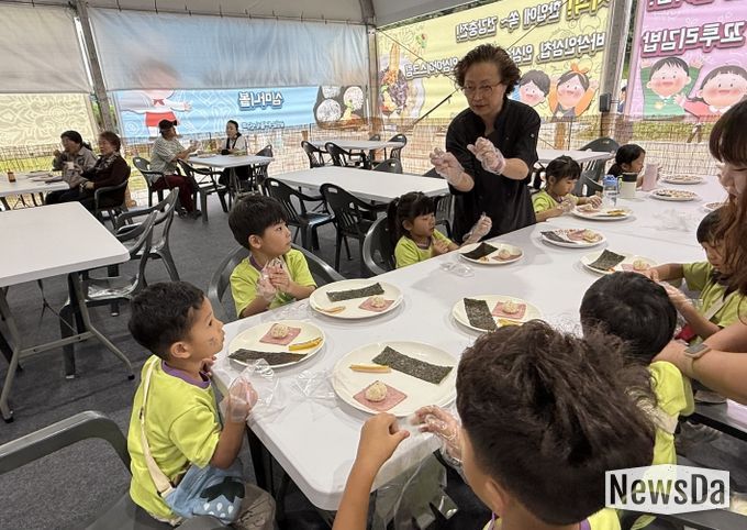 남녀노소 누구나 참여할 수 있는 꼬투리김밥과 구슬떡고치 만들어 먹기 체험을 운영하고 있어 체험객들은 음식을 맛보며 가족·연인 단위 방문객들이 즐거운 시간을 보내고 있다.