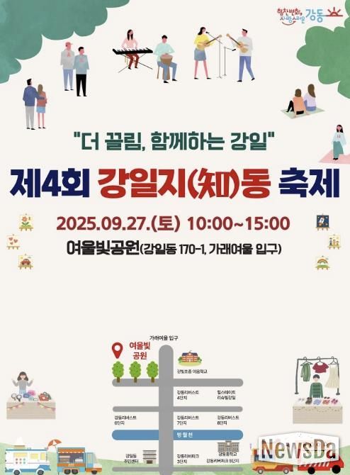 뉴스다 최광묵 기자 | 강동구 강일동은 오는 27일 10시부터 여울빛공원(강일동170-1)에서 온 가족이 함께 즐길 수 있는 ‘제4회 강일지(知)동축제’를 개최한다고 밝혔다.