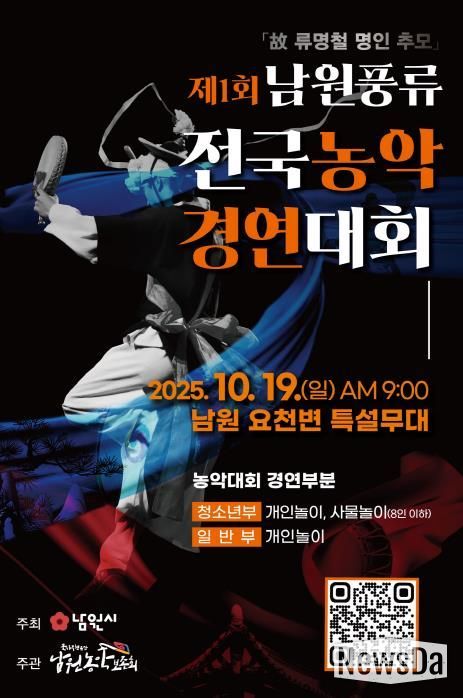 최경식 남원시장은 “남원풍류 전국농악경연대회가 전통 농악을 계승하고 청소년부터 성인까지 모두가 참여하는 문화축제로 자리매김할 것”이라며 “농악의 본향 남원이 문화적 위상을 더욱 공고히 할 수 있도록 다양한 지원을 이어가겠다”고 밝혔다.